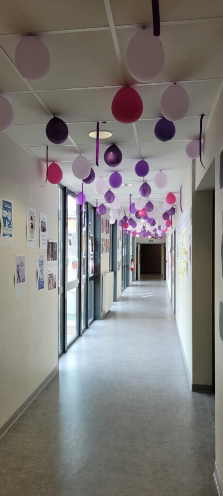 À l’occasion du 8 mars, Journée internationale des droits des femmes, les élèves des sections ST2S et STMG ont transformé la passerelle de l’établissement en un véritable parcours immersif.